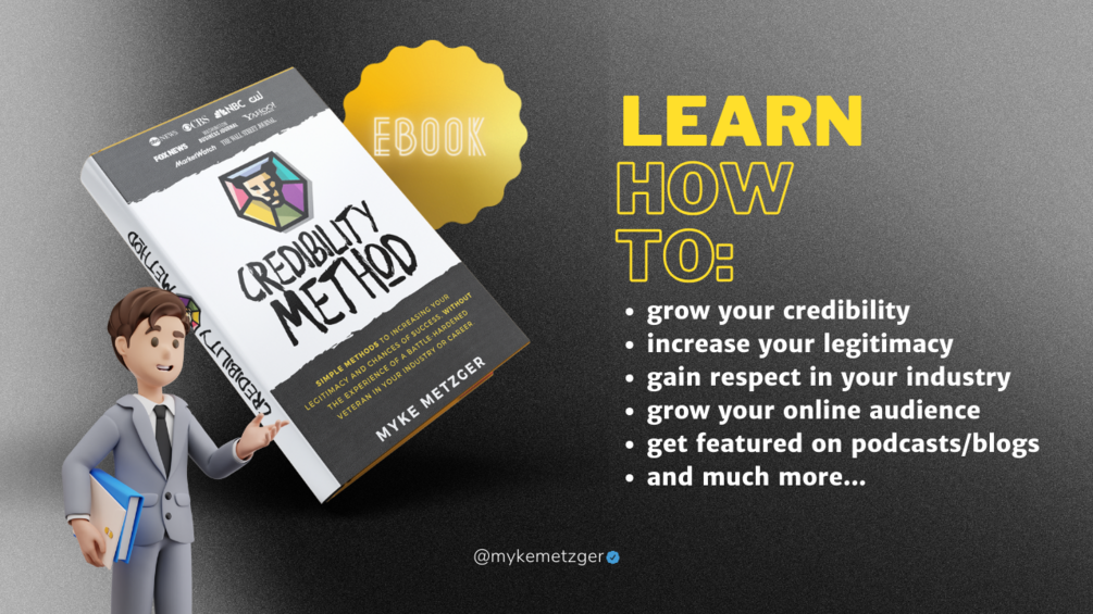 Learn the 'TREK Method' in "Credibility Method" to boost your credibility and success in just 4 simple steps. Ideal for entrepreneurs and career beginners aiming to enhance their legitimacy and become authorities. Myke Metzger's book has gained attention from major publications like Entrepreneur Magazine and The Wall Street Journal.